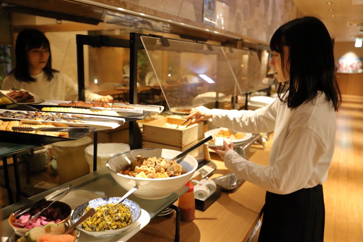 なかでも人気を集めるのは、どこかほっとする味わいの和のおかず。がめ煮や辛子明太子、高菜などの福岡のご当地メニューも味わえます。特に辛子明太子は大人気で、すぐになくなってしまうほど。とろとろのスクランブルエッグやソーセージ、シリアルなどの洋食も人気です。