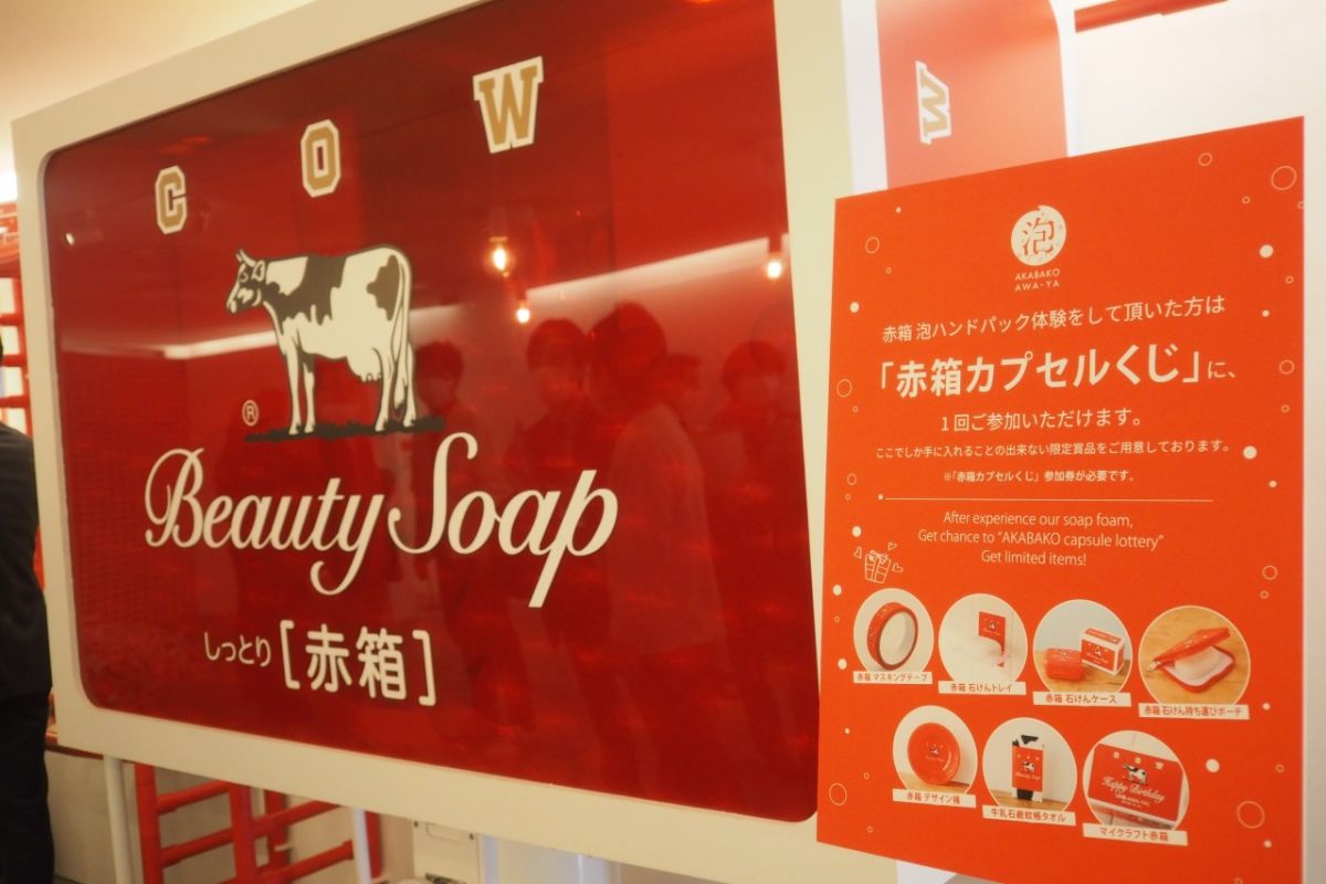牛乳石鹸の「カウブランド 赤箱」。真っ赤な箱に牛のアイコン、誰もが知る有名石鹸です。「赤箱 AWAYA-in KYOTO」は、そんな赤箱の魅力をより若い人たちに知ってもらおうと始まったイベントで、今回およそ3年半ぶりにリアル開催されることとなりました。