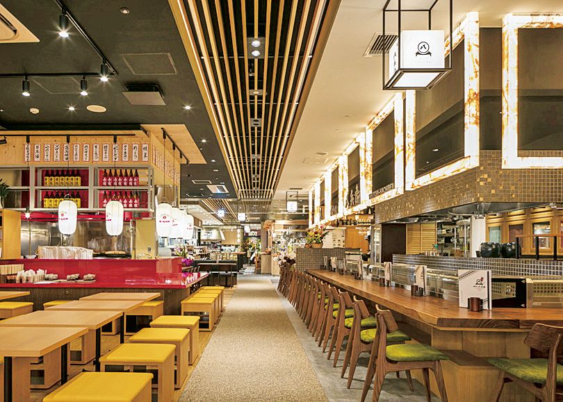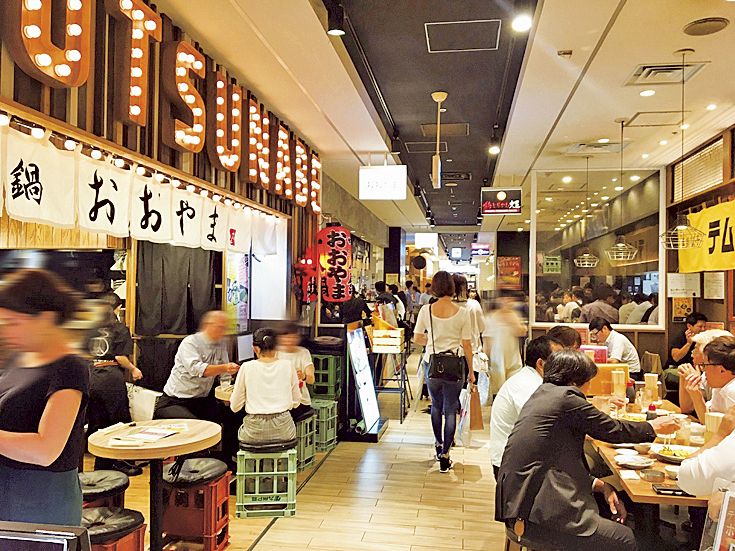 「KITTE博多」に隣接する「JRJP博多ビル」は、福岡の名店や話題の飲食店などが、地下1階から地上2階にズラリと並んでいます。地下1階の「駅から三百歩横丁」では、ランチやはしご酒を楽しみましょう。