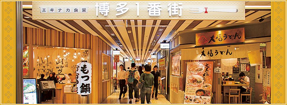 「博多1番街」は、旧駅ビル時代から愛され続ける食堂街で、福岡の名店や老舗が軒を連ねます。朝7時から営業しており、朝食を取るにも便利な立地です。
