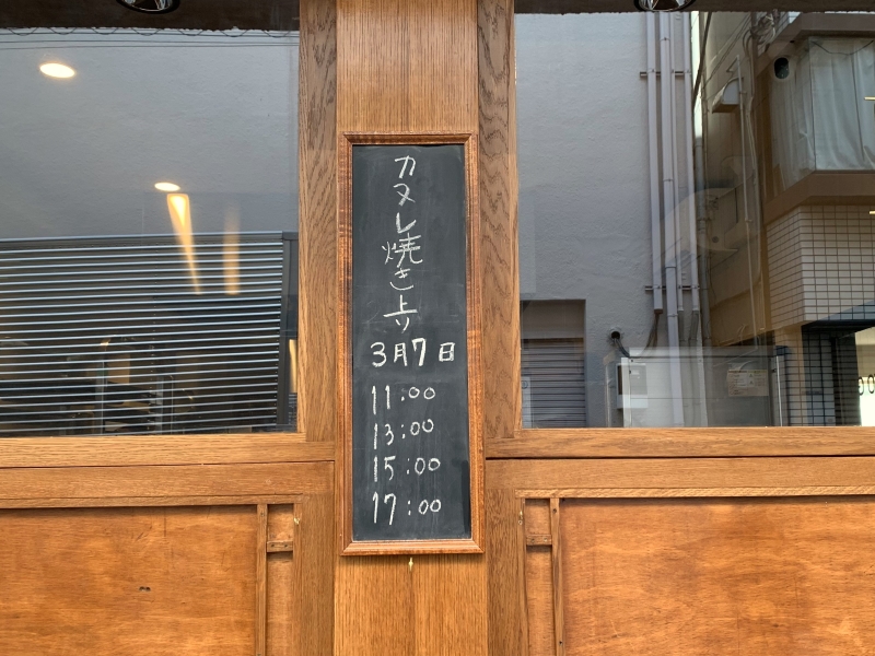 「クラマエ・カヌレ」の焼き上がりの時間は、店頭の看板と公式SNSで公開中。この時間に合わせ、多くのカヌレ好きがつめかけます。