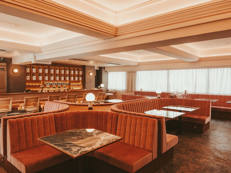 2階のカフェフロアには、くすみ感のあるピンクを基調としたクラシカルなスペースが広がります!ベロアのソファーに大理石柄のテーブルと、ヨーロピアンテイストで統一されています。SNSでは、店内の2階で撮影した写真が多数投稿されていますが、思わず写真を撮りたくなるのも納得です。