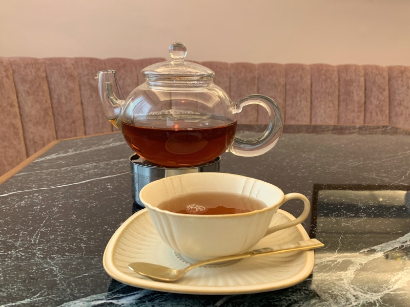 ホットを注文するとポットで提供してもらえます。ティーポットウォーマーも一緒に提供されるので、最後まで温かいお茶がいただけてうれしいですね!
