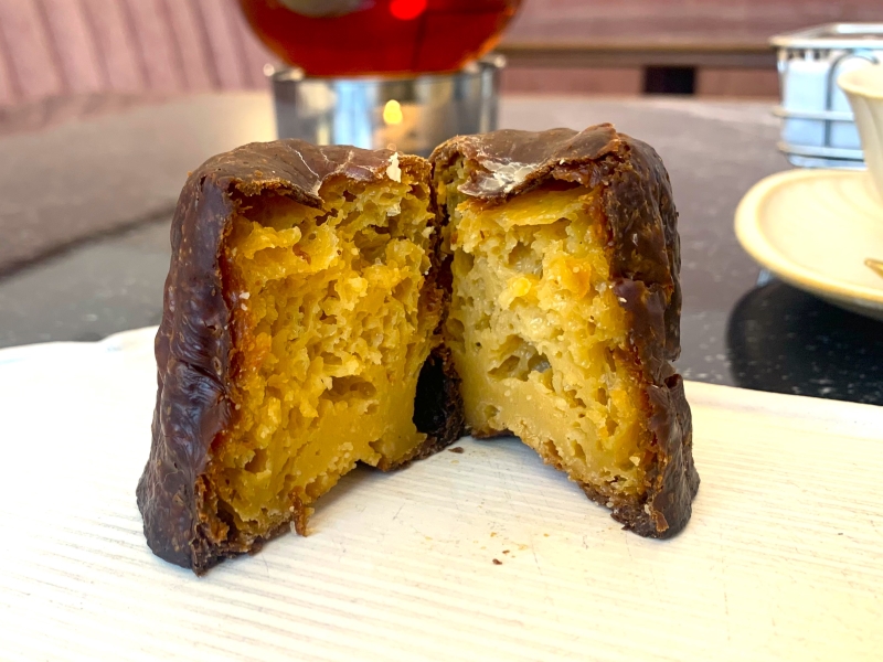 まずはリッチな味わいが楽しめると話題の「グランカヌレ」からいただきます。こちらのカヌレに使用している卵は、徳島の養鶏場にカヌレ用として特別に生産をお願いしているものなんだとか!卵の味が際立っているのがこのカヌレの特徴。