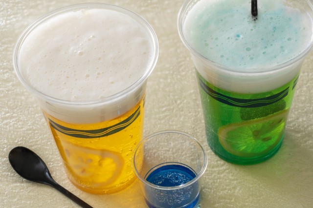レモンジンジャー風味のビアカクテル。別添えのブルーシロップを混ぜると色が変わり、シロップの中のラメが広がります。飲むだけじゃない楽しさもある、アルコールドリンクメニュー。見た目と味わいの変化を楽しんで。8月31日(木)までのメニュー。