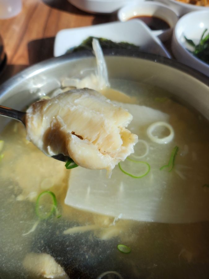 あっさりしていそうな見た目とは違い、本当に濃厚なスープで食べごたえがありますが、多くの人がしっかり完食するそう。二日酔いの方の朝ごはんとしてもオススメなのだとか。タラがたっぷりと入っているのも魅力的で、食べれば釜山っ子のテッパン朝ごはんといわれることがわかるはず!