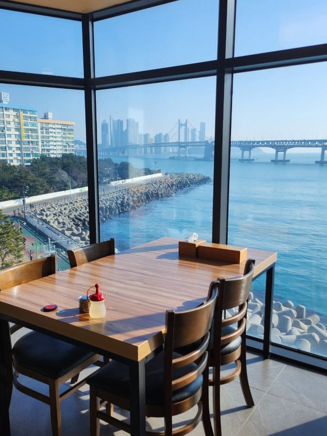 先ほどから景色のよさをお伝えしていますが、店内はとても広く、窓側でないとその魅力的な海の景色を見ることができないので、ぜひ窓際のテーブルを確保してください! 窓ガラス一面から見える海は圧巻で、釜山の思い出になること請け合いです。