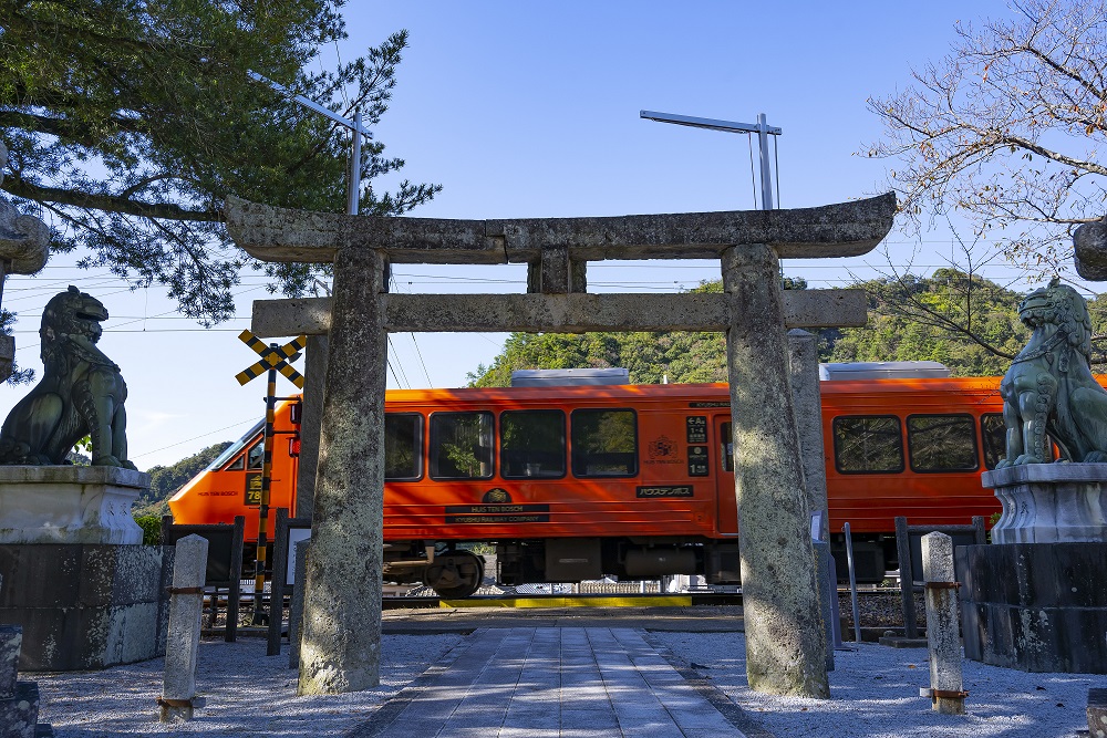 その理由は…、神社を列車が通りぬける光景を見ることができるから!