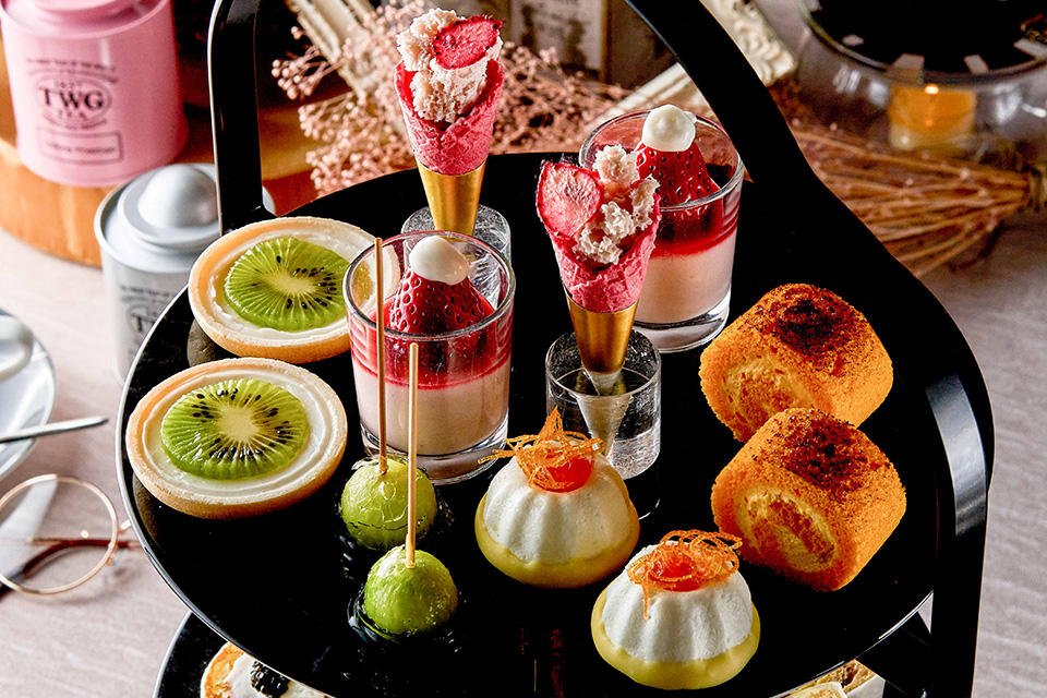 飲み物はシンガポール発世界屈指のラグジュアリーティーブランド「TWG Tea」から8種類の紅茶のほか、コーヒー、カフェラテ、カプチーノ、エスプレッソ、アイスコーヒー、アイスティーが好きなだけオーダーできます。さらに、フルーティーな春らしいウェルカムドリンクも用意されています。