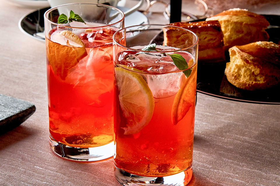 アールグレイティーをベースに、シロップとオレンジやベリーなどを使った春らしいフルーティーなティーサングリアです。