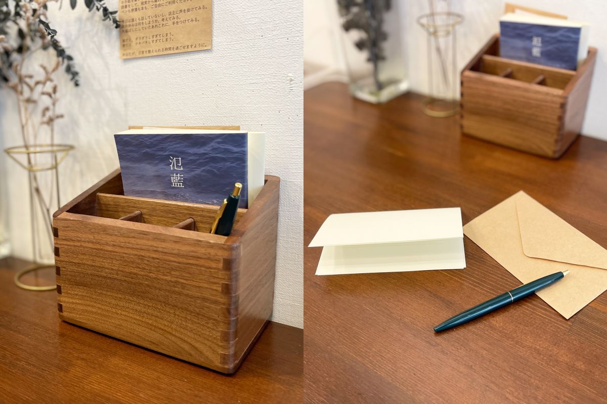 各席には文庫本や便箋、ペン、ドライフラワーが置かれています。そのため、スマホから離れて自然と本を読んだり、手紙をしたためたり、花を眺めながら考えごとをしたりして、自分時間を楽しみたくなるはずです。