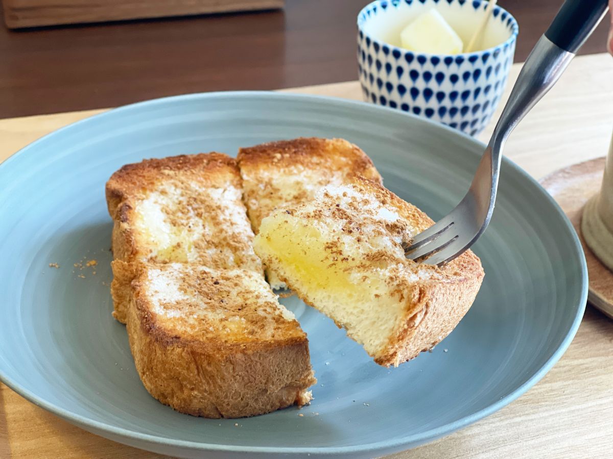 厚切りの食パンは、外側はサクッと、中はじゅわっ&ふわっとしていてまさに理想形。