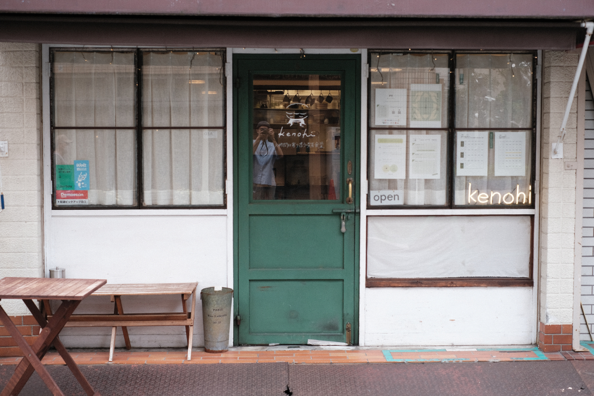 東急目黒線 武蔵小山駅から徒歩約7分。大通り沿いから小道に入ると、グリーンの扉が目印の「kenohi」に到着。どことなく年季を感じる店構えは、もともとあったお店のさびれ感に惹かれてあえて生かしたのだそう。