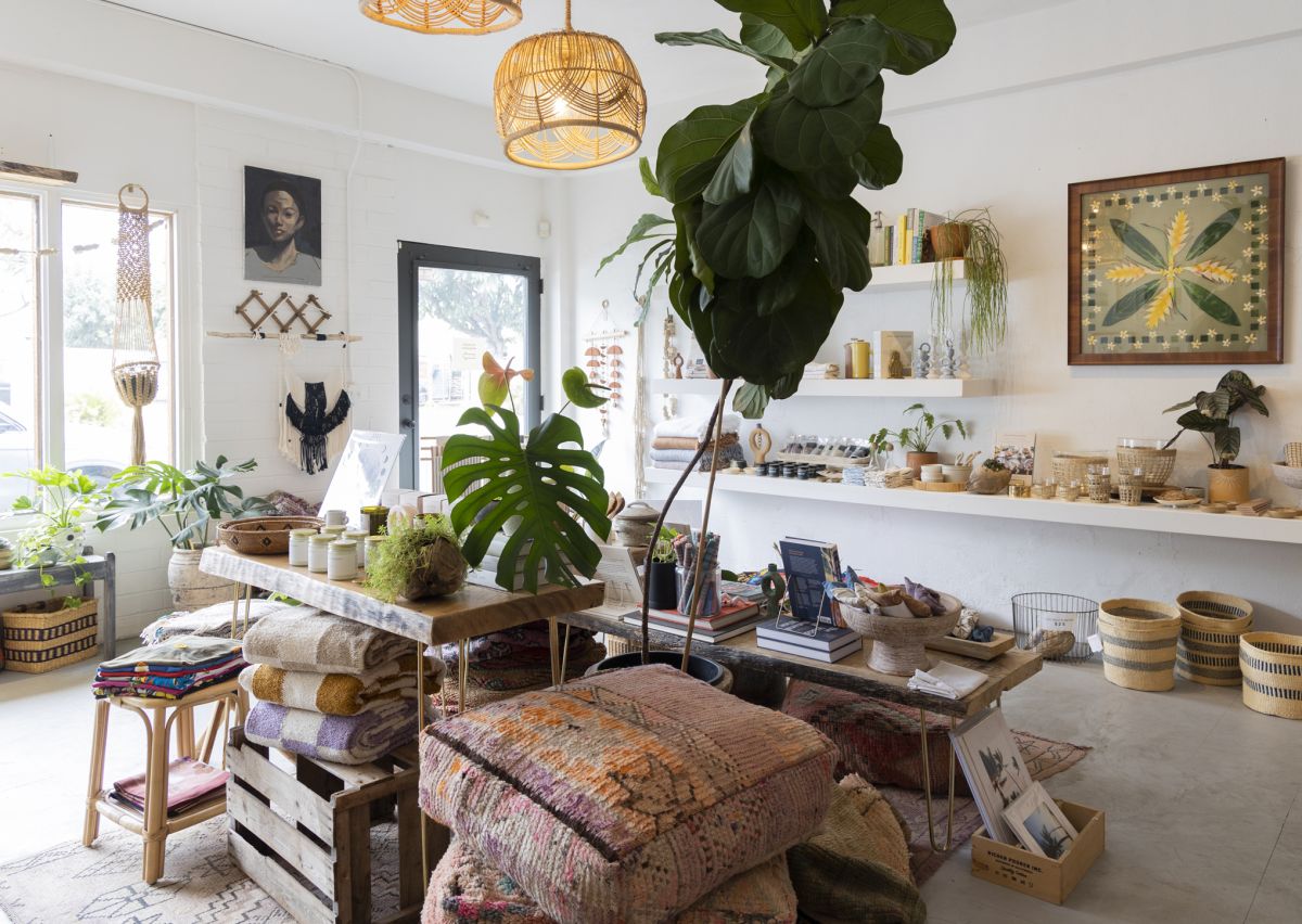 店舗の左側には、2019年に新設されたインテリア雑貨のコーナーが広がります。食器、アート、グリーン、モロッコ産のビンテージラグなど、多彩なアイテムが揃い、センスの良さが光る商品に目移りしてしまいます。