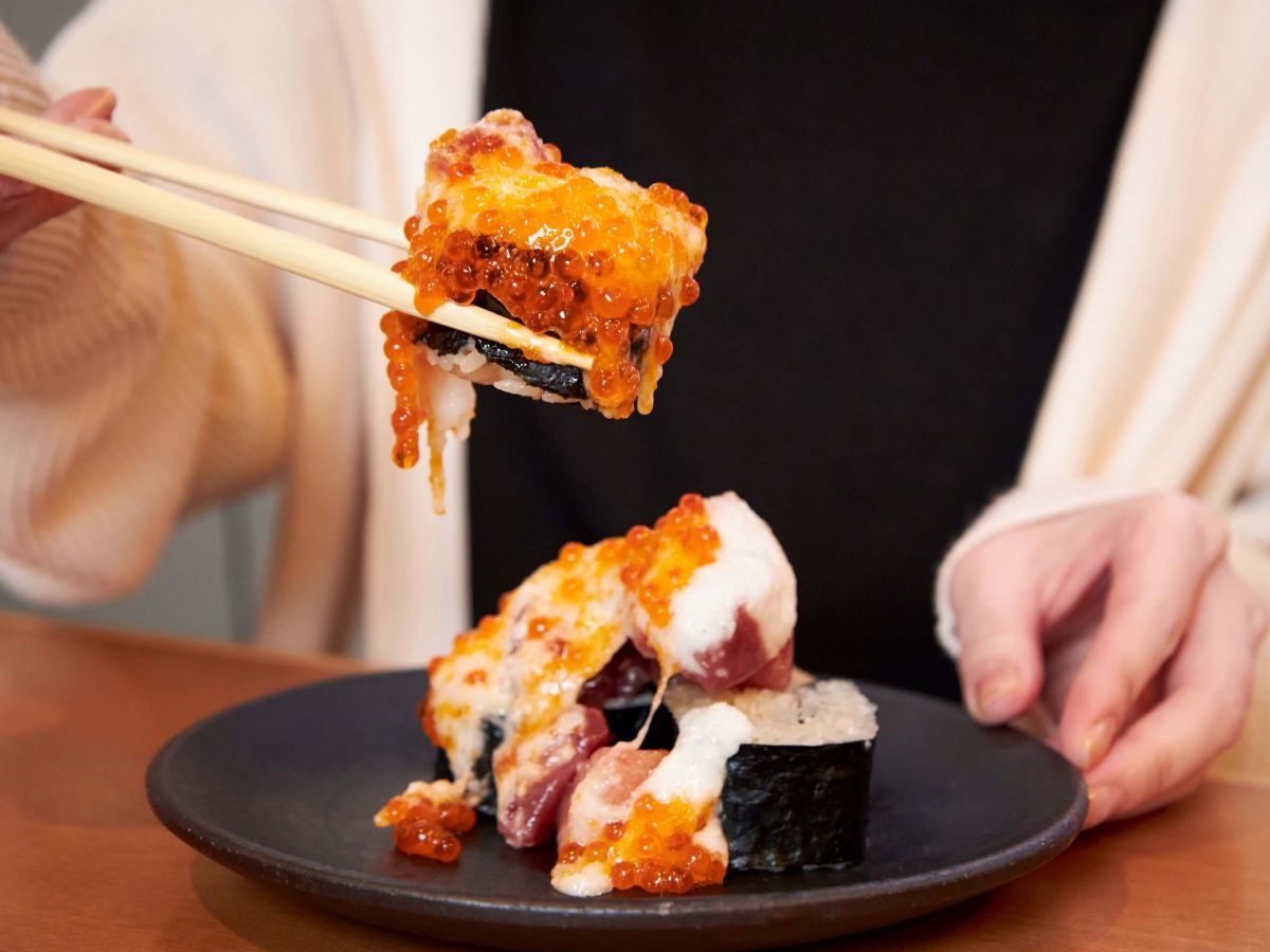 口に含んだ瞬間、すべての具が混ざりあってこの上ないおいしさに!あえて酸味を抑え、まろやかながらもすっきりとした味わいに仕上げた、赤酢を使った海苔巻きとの相性も抜群です。大きくカットされた生本マグロの漬けが、ごろごろと入っているのもうれしいポイント。お酒のおつまみとしてもおすすめですよ。