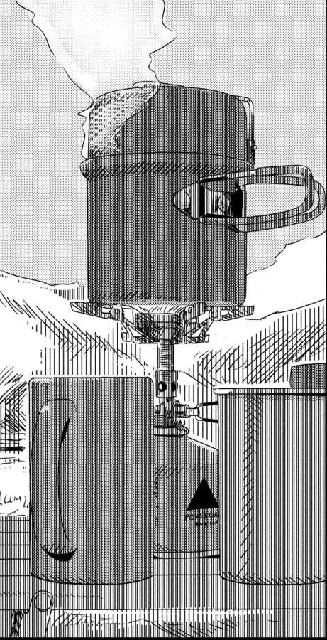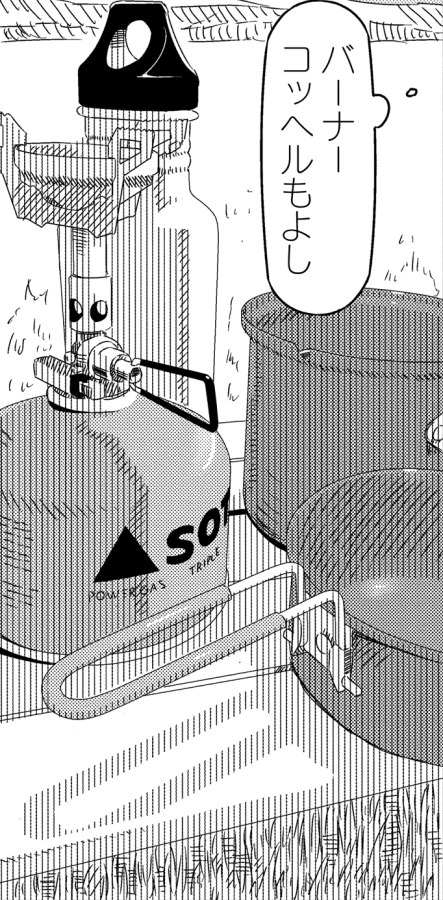 胸ポケットに収まるほど小さいのに、強風下、低温下でも安定した火力を得られます。五徳は着脱式で、標準では3本五徳を付属。作中でリンは、オプションの「大型4本ゴトク」1650円を付けて使用しています。