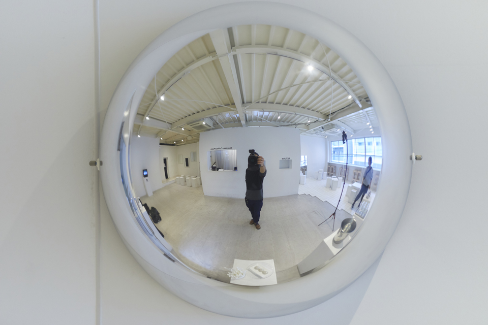 魚眼レンズに写る自分を撮影してもおもしろいですね。