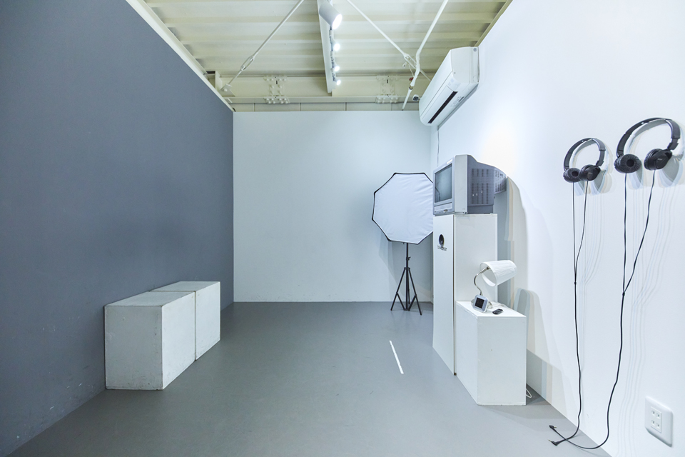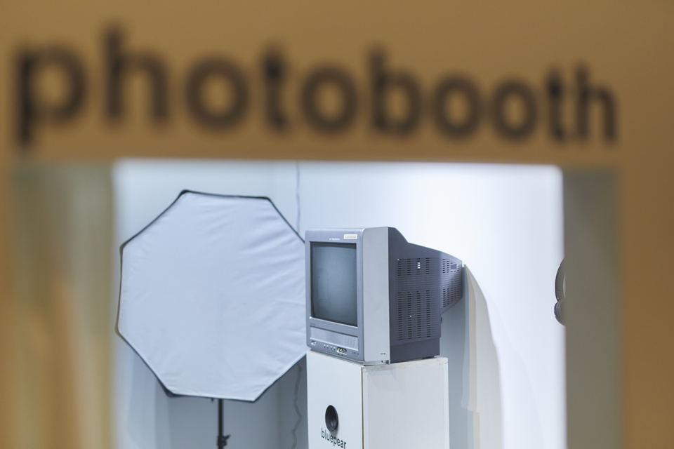 フォトスタジオはモノトーンでまとめられています。ヘッドフォンやテレビ、ランプなどは撮影小物として自由に使うことができます。待機スペースには、みんなが撮影したオシャレ写真が飾ってあるので、ぜひ参考にして撮影を楽しんでみてください。