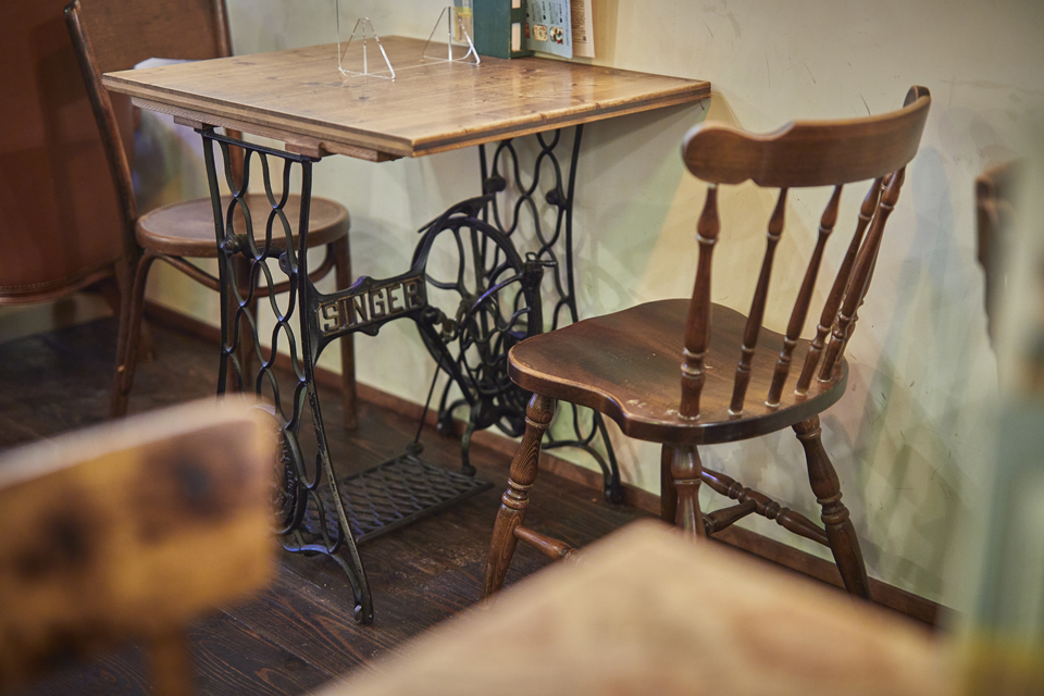 店内にはさまざまアンティーク家具が配され、どこに座るか選ぶ楽しみも。