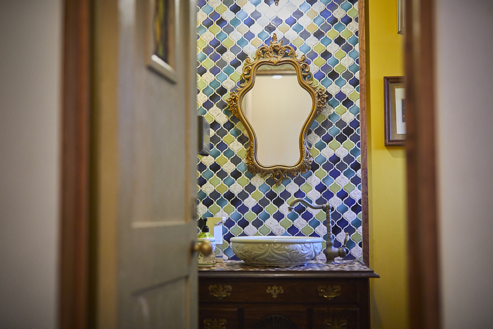 タイルを配したオシャレなトイレもお見逃しなく。細部にまでこだわりが詰まった空間づくりは、ため息ものです。