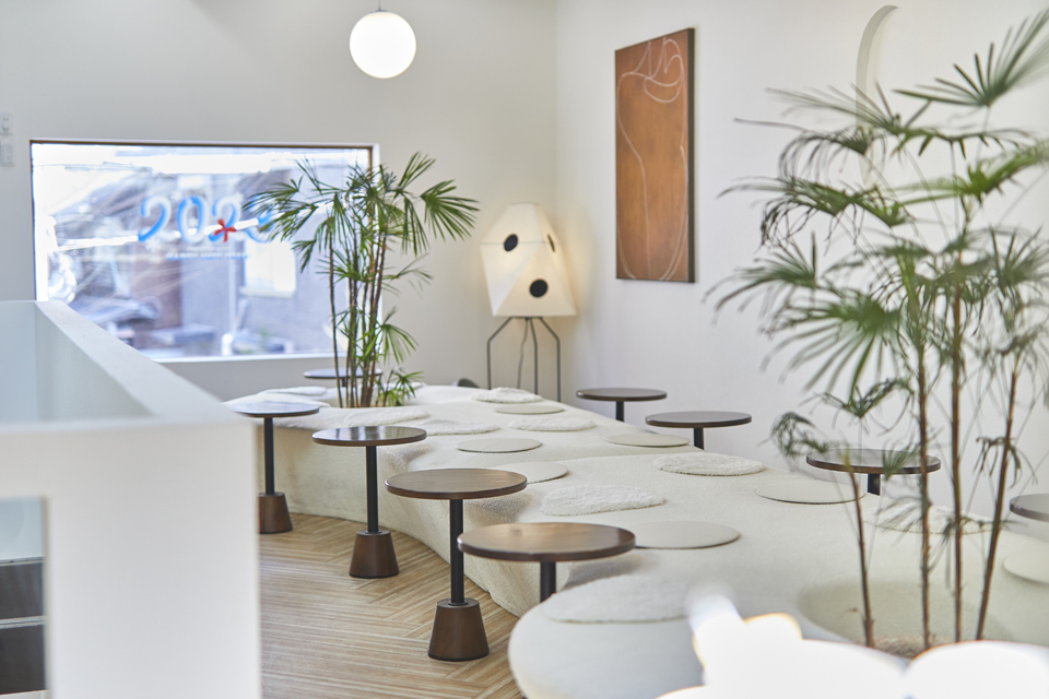 白を基調とした2階のカフェスペースもオシャレ