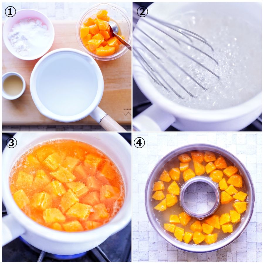 ①グラニュー糖とアガーをよく混ぜておきます。