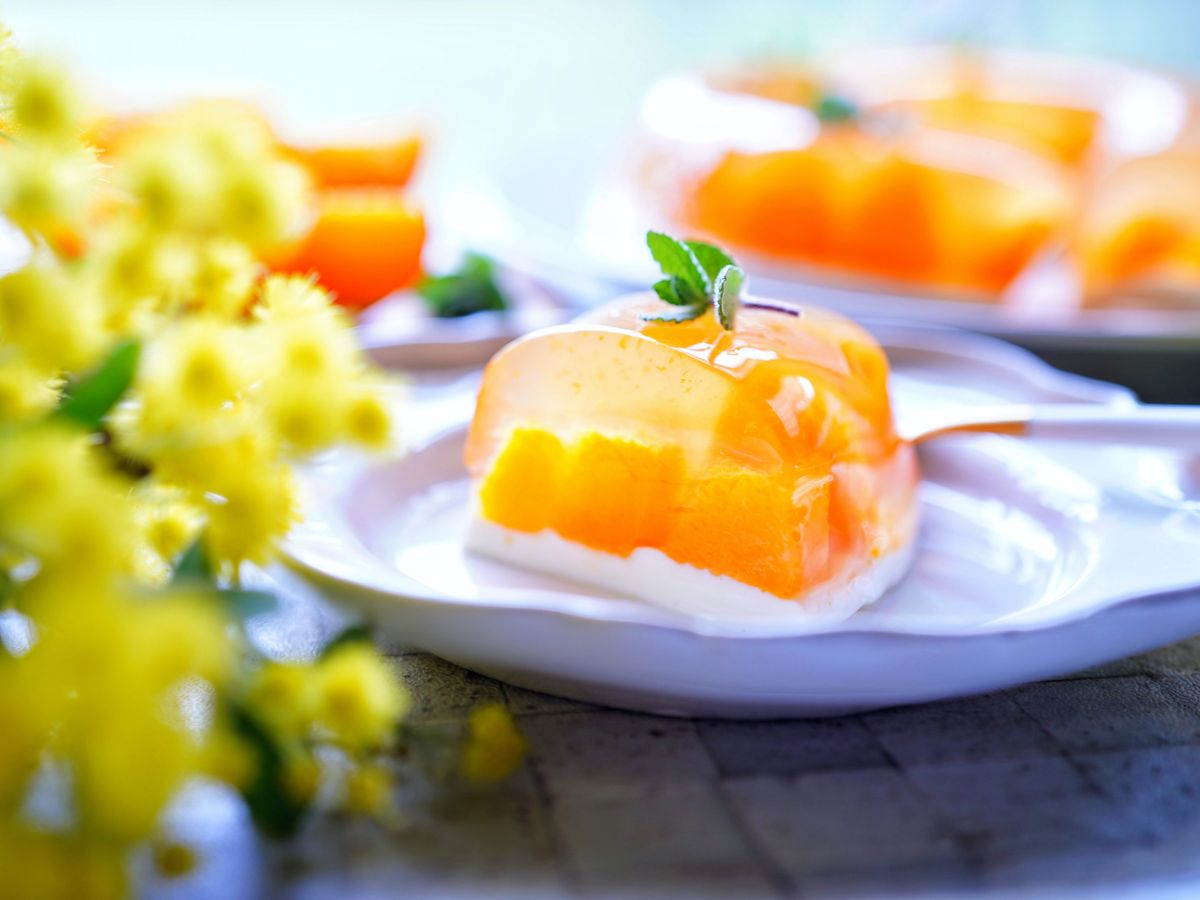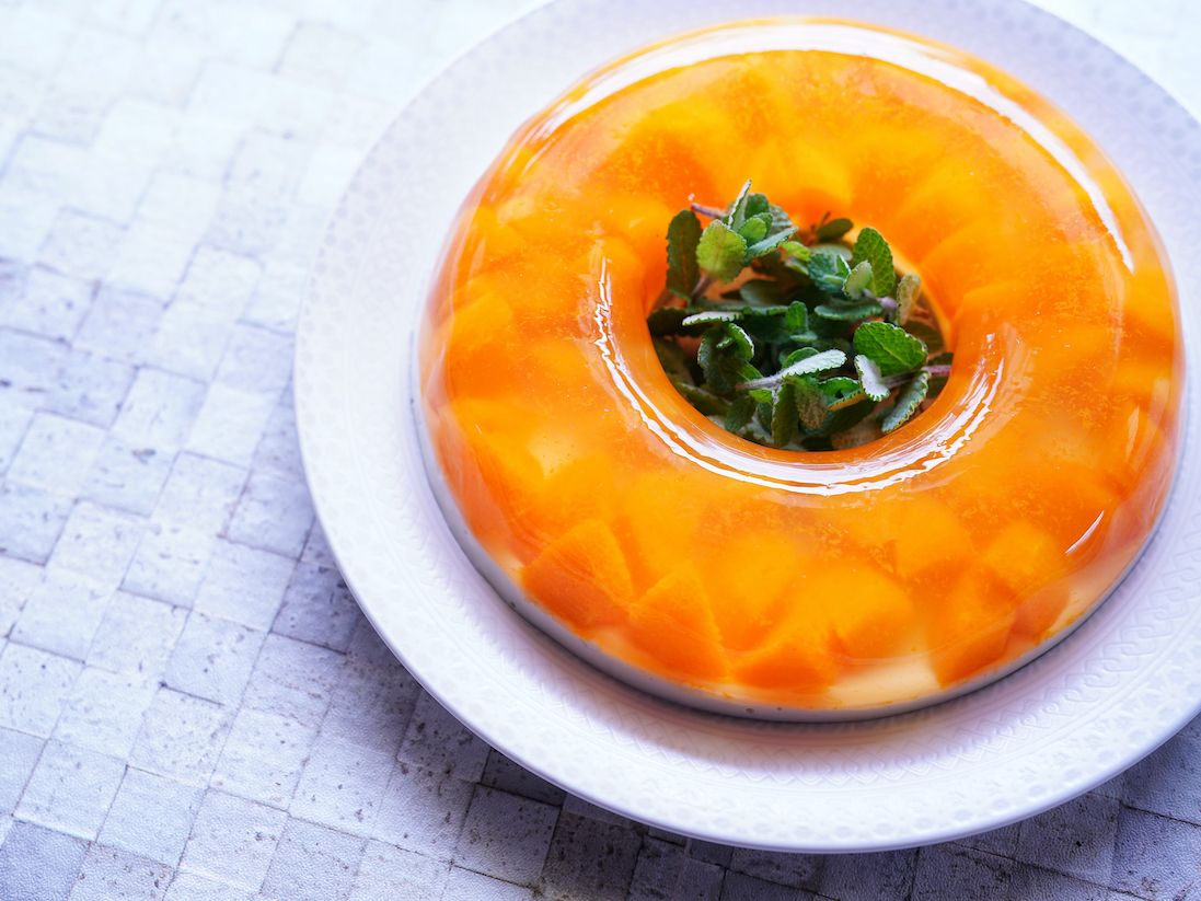 レトロなエンゼル型で作ったみかんゼリーは、ミントの飾り方ひとつで雰囲気が変わります。