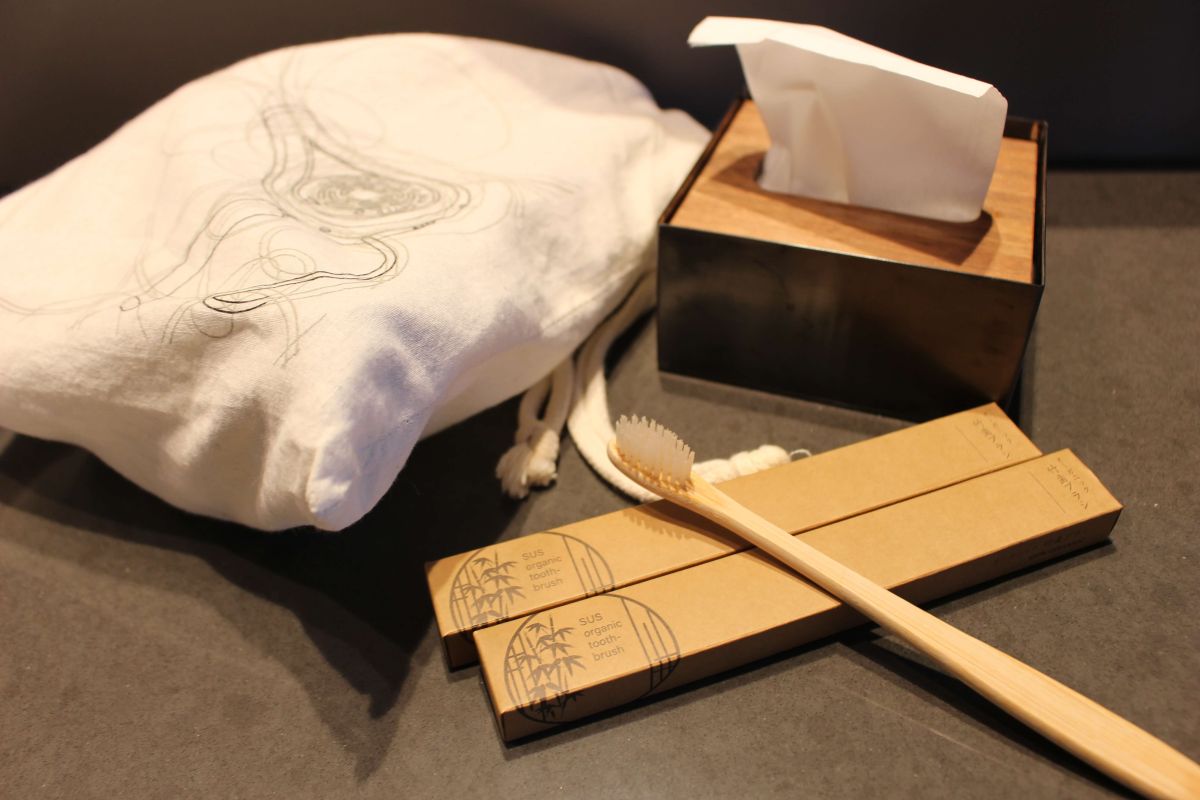 これらのアメニティも、地元の職人さんが手がけた製品を中心にセレクト。ティッシュBOXは地元・台東区でものづくりの企画開発を行う「SyuRo(シュロ)」と連携したアイテムです。