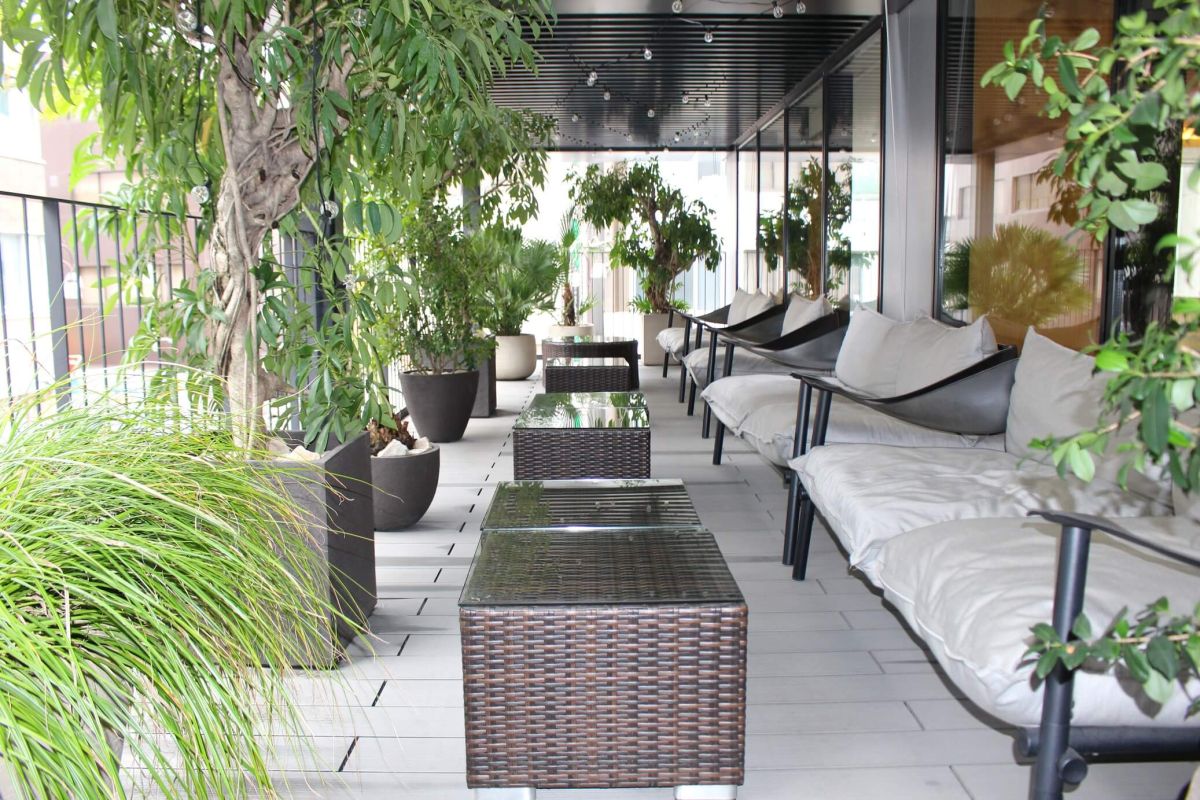 ライブラリーラウンジの横には、テラスを併設。天気のよい日は室外の開放的な空間で、街の賑わいや季節の風を感じながらのんびりくつろぐのもおすすめです。