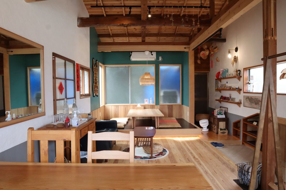 扉を開けると、手作り感あふれるとてもかわいい空間が!空き家をレンタルして、大工さんと一緒にDIYで作り上げたそうです。本業はデザイナー兼イラストレーターだという李さんの奥様・劉さんのセンスが発揮されています。店は2階建てで、1階は注文カウンターと厨房スペースになっています。