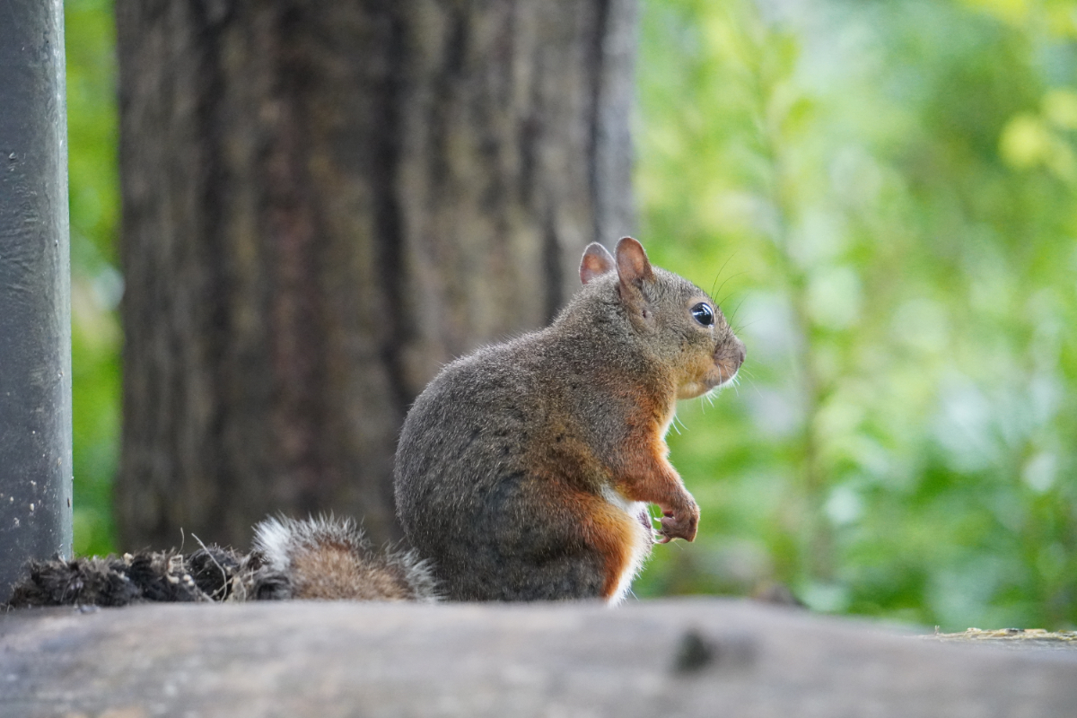 「小鳥とリスの森」では、ニホンリスとメジロなどの和鳥を放し飼いにして展示(鳥インフルエンザ対策のため2023年4月現在、閉鎖しています。事前に確認のうえおでかけください)。森に見立てた大きなゲージの中で動物たちが自由に動く様子を観覧でき、思わず没入してしまいます。