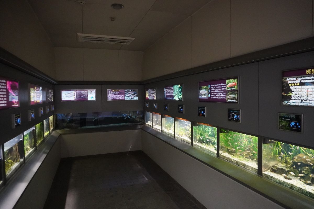 「世界のメダカ館」も必ず見学したい素敵な展示施設。世界的にも珍しいメダカに特化した水族館で、身近なメダカから世界のメダカまで観察ができます。