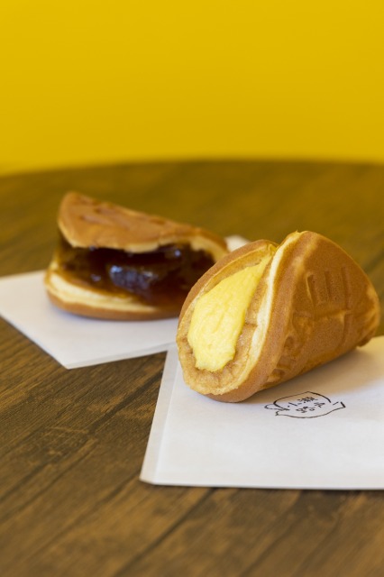 ワッフル専門店として2022年9月にオープンした豊島屋の新店舗。小豆あんやチョコクリームに、甘納豆やバターなどのトッピング50円~をして、好みの味に作ってもらうことができます。「カスタードクリーム」280円や「あんずジャム」250円など、味は8種類。注文後に店頭で焼くのででき立てをいただけますよ。