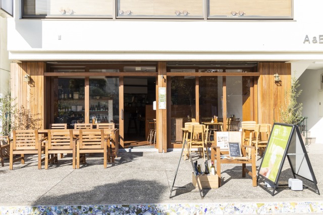 テイクアウトはもちろん、自然派ワインと一緒にイートインも楽しめます。入り口ではおすすめのワインや調味料も販売。