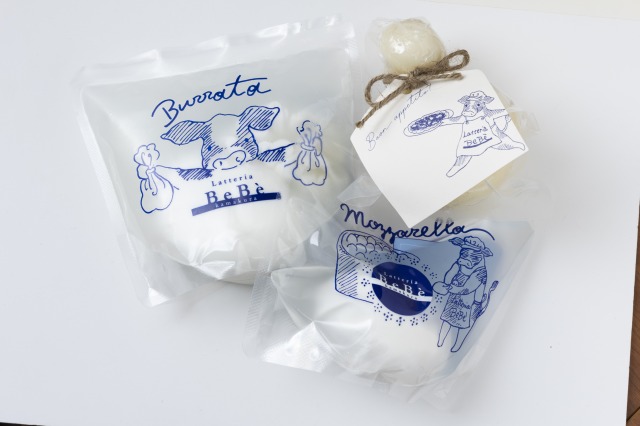 オーナーの山崎さんはプーリアで修業をしたチーズ職人。本店併設の工房で作られる自家製チーズそのものの味もぜひ味わっておきたいところ。「モッツァレラ」540円、「ブッラータ」1280円、「カチョカヴァッロ」1512円などが購入できますよ。