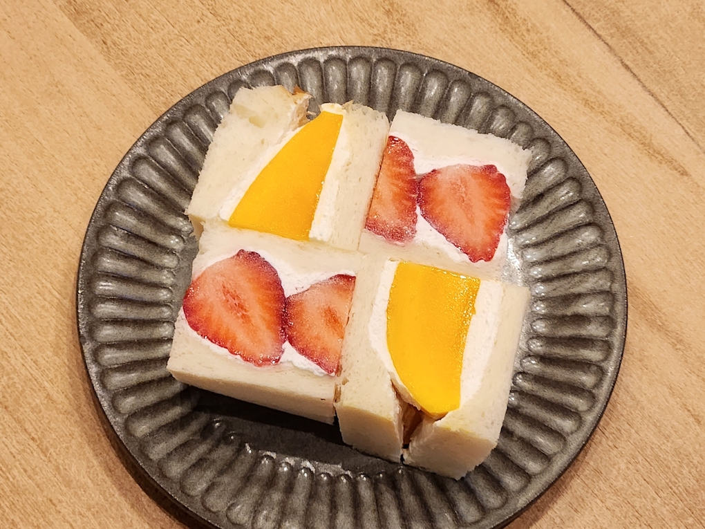 イートインもあり、フルーツサンドをカットして盛り付けてくれます。