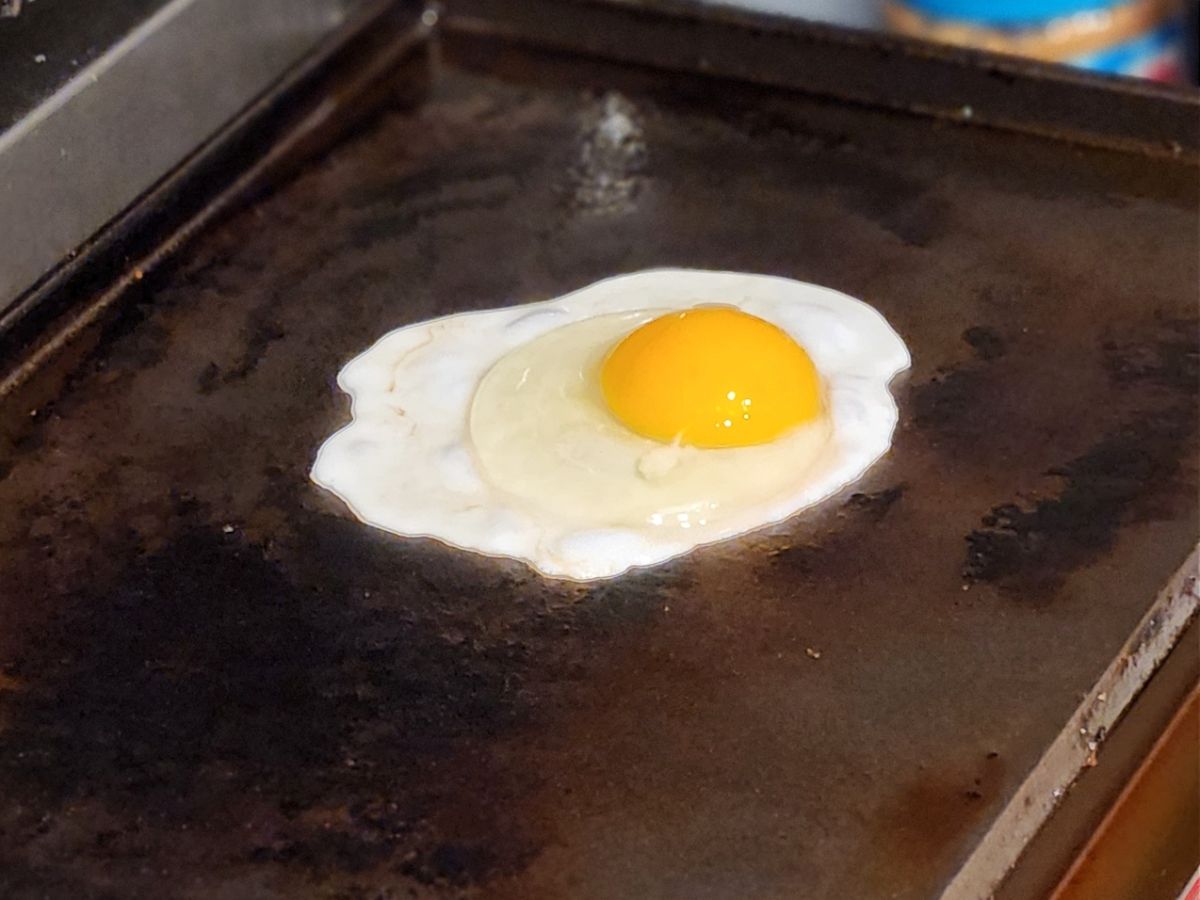 まずオーダーを受けてから、目玉焼きを焼き始めます。