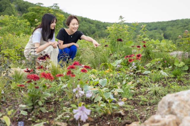 「竜王マウンテンリゾート」の山頂エリアにはさまざまなハーブが育てられている「雲海ハーブガーデン」が。テーマの異なる9つのガーデンには、約70種450株の花々やハーブが咲き誇り、2023年にはエリアの拡大も予定されています。レモングラスやローズマリー、「ハーブの女王」とよばれるラベンダーなどの身近なハーブから、標高が高い場所にしか生息できない「ブルーポピー」など、四季折々の自然あふれる花々に癒やされるはず。屋外にはハンモックのあるエリアがあるので、四季を感じる空間でのんびりしてみてくださいね。
