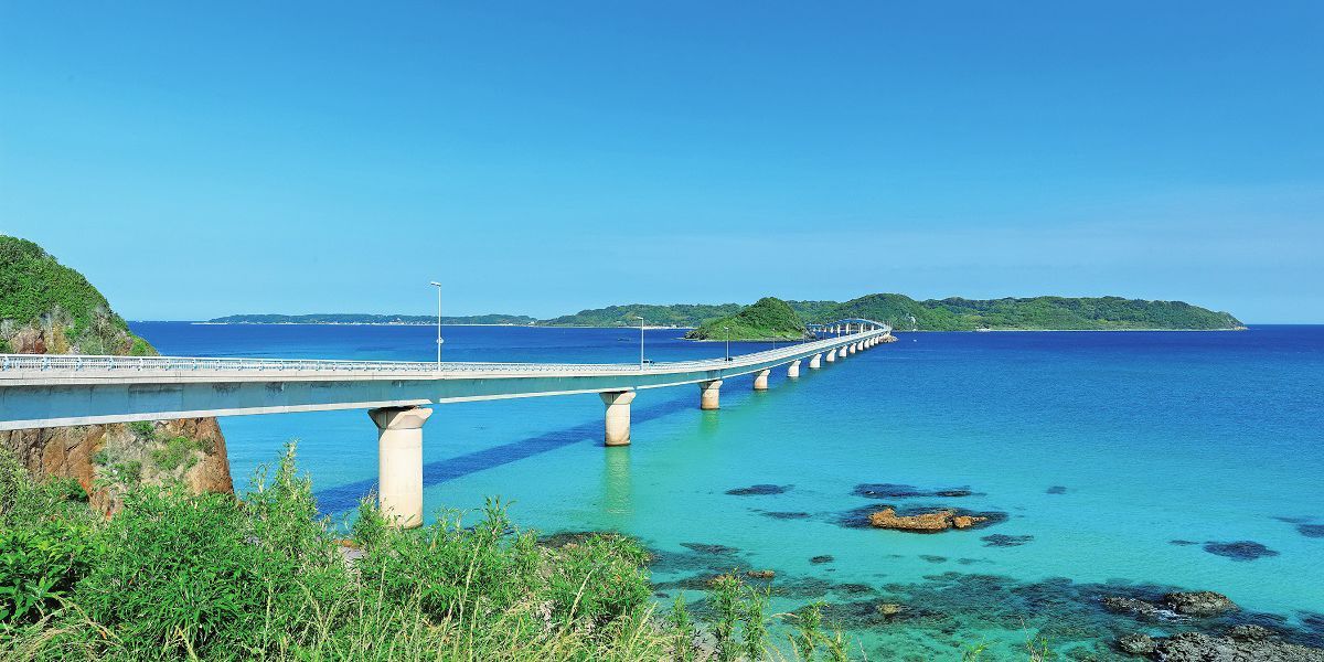 青い海と緑の島の間を抜ける山口県・角島大橋(つのしまおおはし)。CMや映画で脚光を浴び、今や日本屈指の定番絶景スポットに。そんな角島の開放感あふれるドライブコースをご紹介します。所要時間は5時間ほど、半日あれば思いっきり楽しめます!