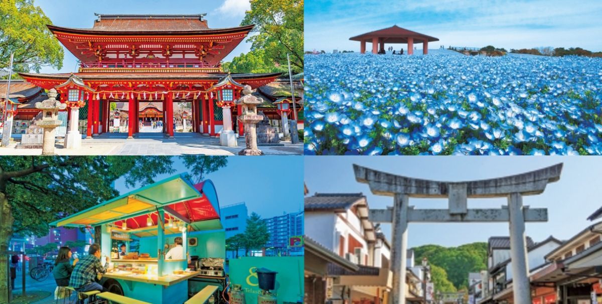 1泊2日で福岡観光のイイトコどりができる、おすすめのプラン決定版!福岡に来たらまずは王道スポットをしっかり押さえて、博多の中心エリアと太宰府を散策しましょう。花景色に屋台、天神様参りと充実の1泊2日プランをご紹介します。