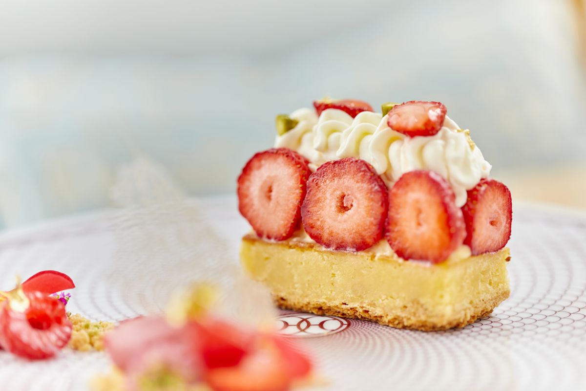 デコレーションの美しさはもちろん、口に入れたときの舌触りや素材同士の味のバランスまでもが計算されています。特筆したいのはタルトの生地部分。タルトにはフォークではうまく切れないイメージがあるのですが、このタルトはしっとりと焼き上げて食べやすく作られています。