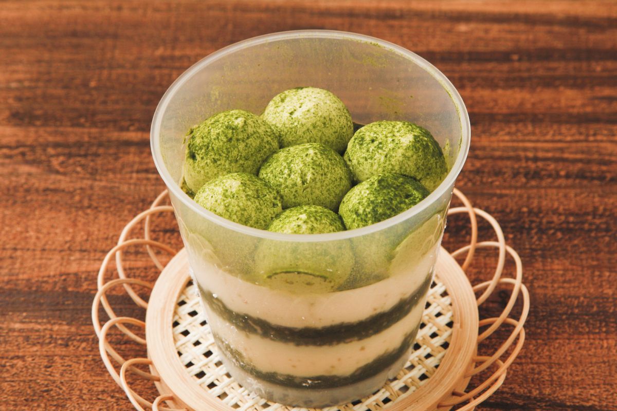 スポンジ部分は抹茶シロップがジュワッとあふれ出るくらいにシミシミでしっとり。ティラミスムースはマスカルポーネチーズ特有のミルクのコクを感じさせながら、口の中でスッと溶けます。全体的に甘さ控えめで、抹茶の苦味も控えめ。抹茶のさわやかな香りが生きたカップデザートです。