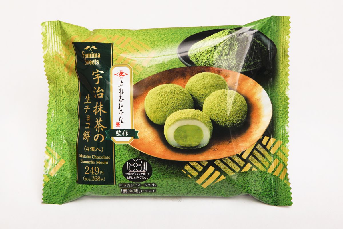 最後にご紹介するのは、3月28日から販売されている「宇治抹茶の生チョコ餅」4個入り268円。