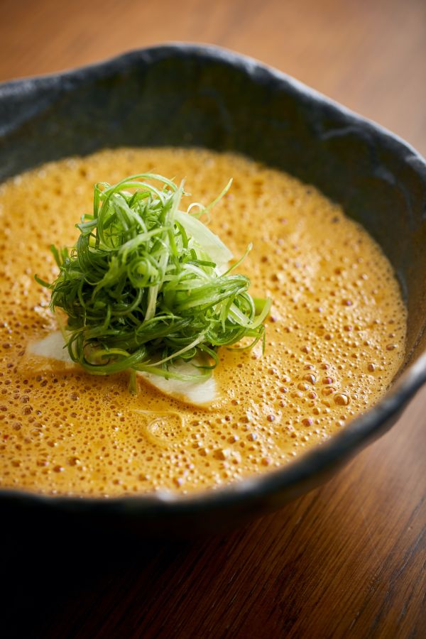 こちらもベースは鶏白湯スープ。唐辛子と練り胡麻を加えて、こっくりと濃厚に仕上げます。唐辛子のヒリヒリとした辛さはなくて、胡麻の香ばしさを感じられるスープが美味。これだけ濃厚なのにギトギトしていないのは、下処理で余分な鶏の脂を丁寧に取り除いてからスープをとっているから。