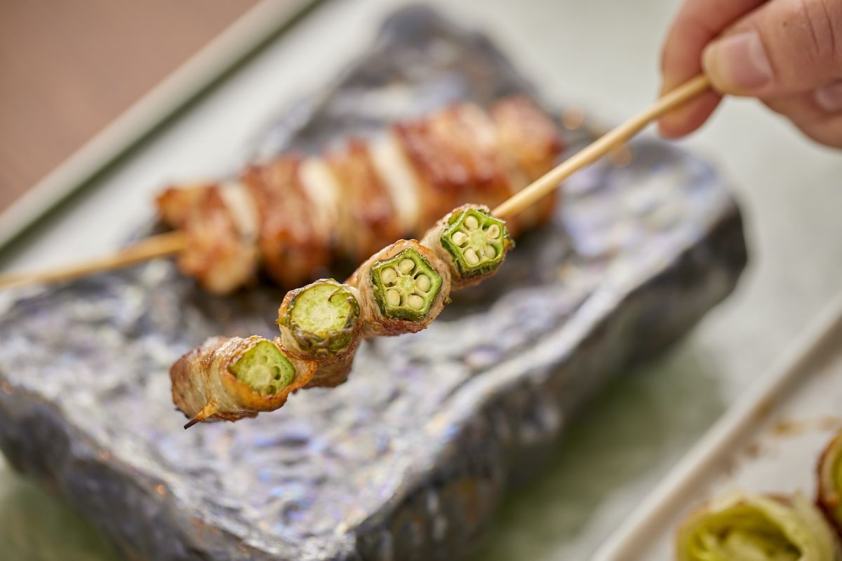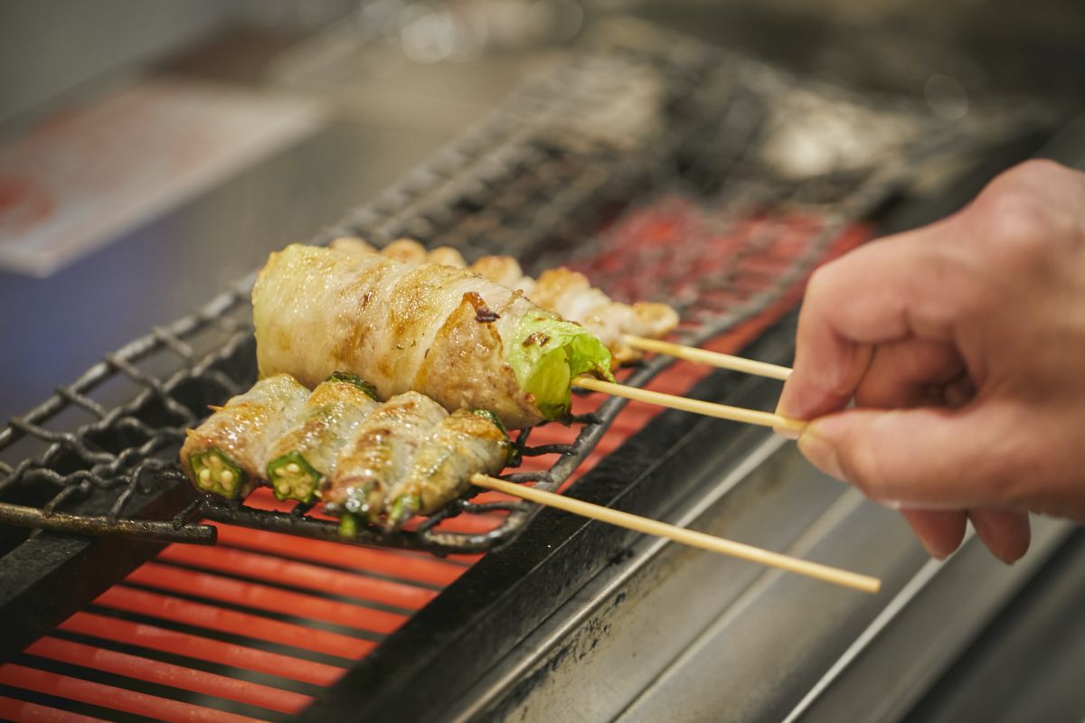 いままでの串焼きといえば、お肉を食べるイメージでしたが、こちらはどちらかというと肉のうま味を吸い込んだ野菜を食べるイメージ。余分な脂が落ちたカリッカリの豚バラとジューシーな野菜。そのバランスが最高です。この食感と味のバランスを実現するために肉の厚みは1ミリでオーダーしているそう。