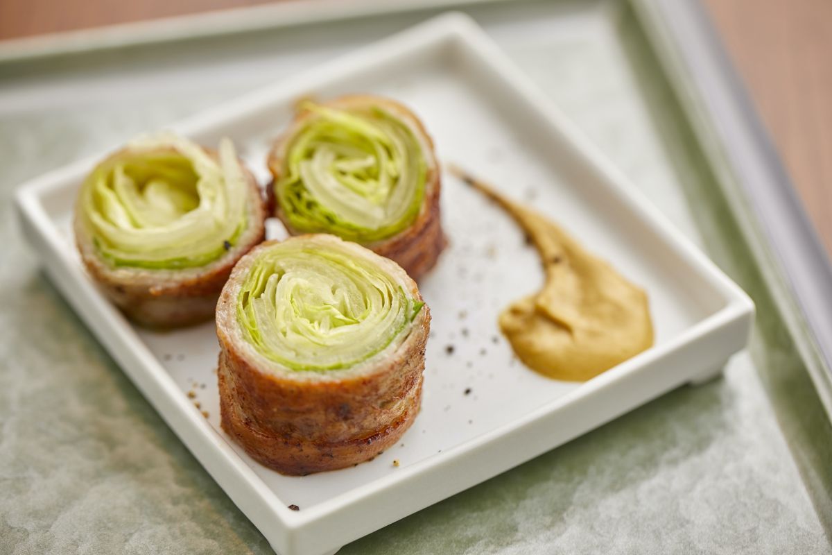 どれも魅力的な野菜串。一番人気はレタスだそうです。マスタードをつけていただきます。野菜のしめる割合が多いので、罪悪感もなく、いくらでも食べられそう。豚バラの塩っけもあって、お酒も進みますね。メニューには串以外にもステーキや一品料理、ごはんものなどもありますよ。