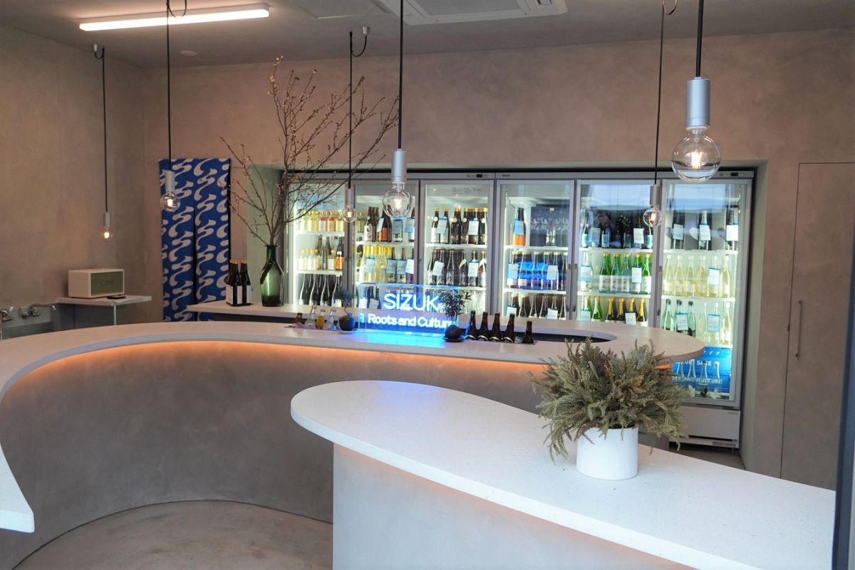 古い建物が残る七条通りに立つハイセンスなビルの1階に「SiZUK-サケノシズク」があります。バーなのかカフェなのか、ちょっと不思議な雰囲気ですが、ここは酒屋さんなのです。