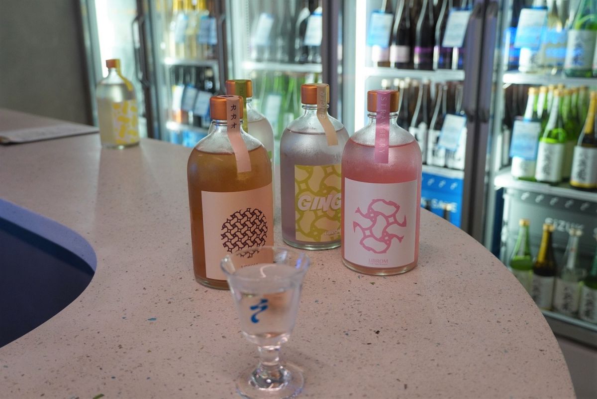 日本酒の味は、素材となる米や造り方によって多種多様です。まず目についた華やかな色のボトルは福岡県、LIBROM(リブロム)のクラフト酒。定番のレモンバーベナのほかにもさまざまな福岡県産の副原料をもろみに加えて搾ったお酒をリリース。副原料由来の味わいと風味を楽しめ、贈り物にも人気だそうです。