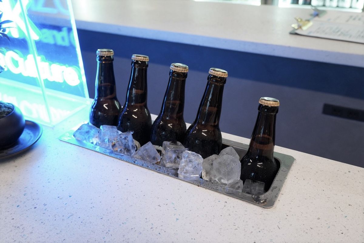 かけつけ一杯、あるいは締めの一杯にビールがほしくなる人は、カウンターの専用スペースで、たっぷりの氷で冷やされている瓶ビールを楽しみましょう。