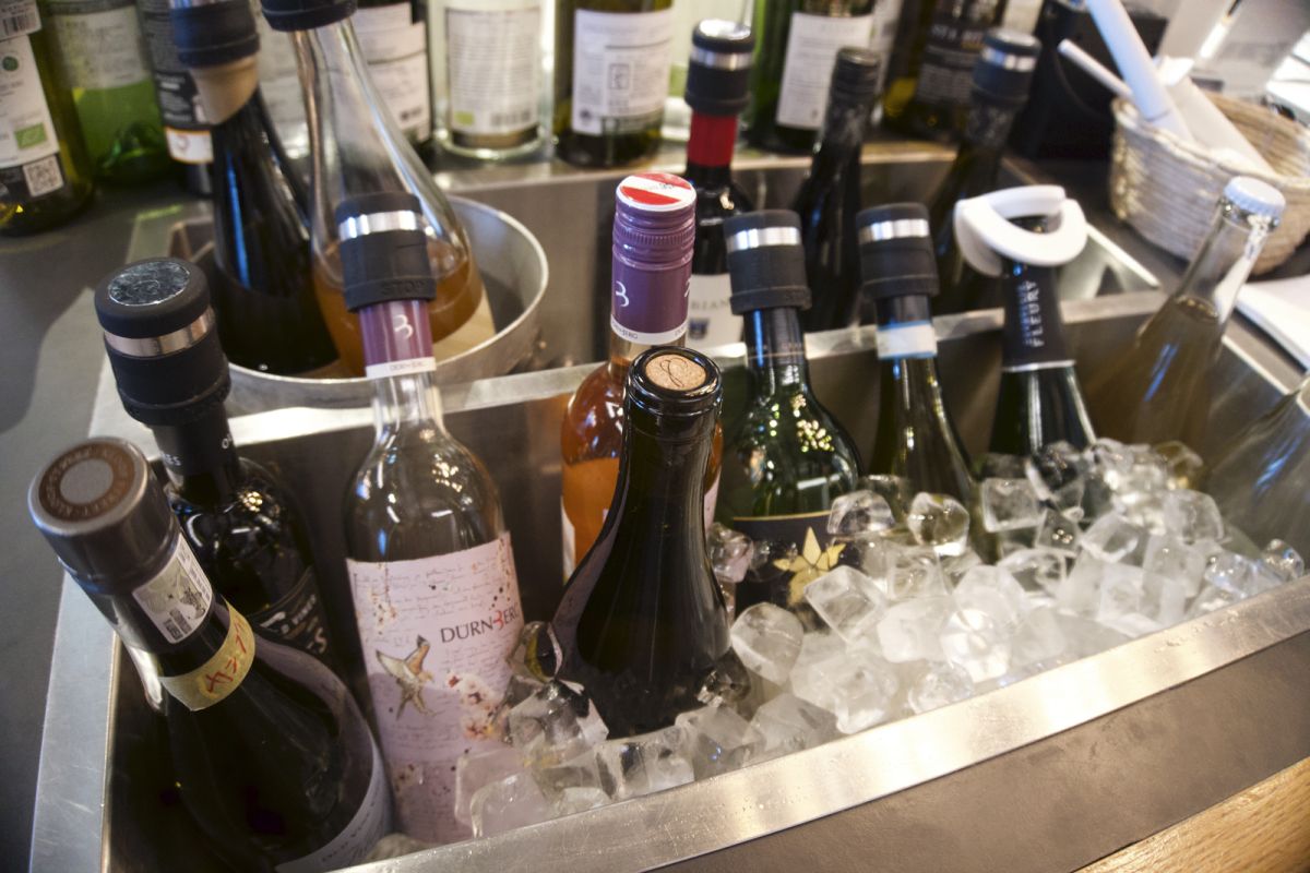 ちなみに取材時(2023年4月)のマンスリーワインは、スパークリング1種、白ワイン2種、オレンジワイン1種、ロゼワイン1種、赤ワイン3種。価格はグラス1000円〜1500円でした。 特製のワインクーラーで、白ワインとロゼワインは冷たく、オレンジワインはやや冷たく、赤ワインは常温で、というようにそれぞれの適正温度で用意されています。